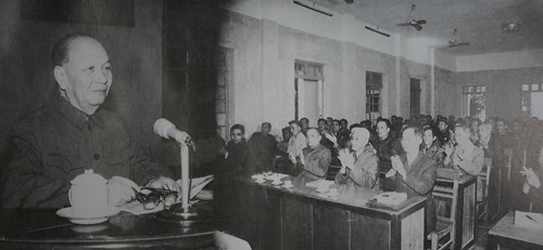 Đồng chí Trường Chinh thăm và nói chuyện với cán bộ lãnh đạo tỉnh Hải Hưng, tháng 1-1981. Ảnh tư liệu