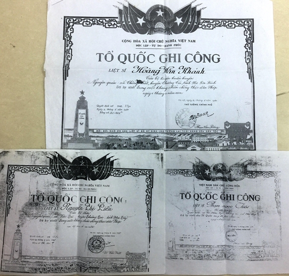 3 chiến sĩ cách mạng hy sinh đã được công nhận liệt sĩ và cấp bằng Tổ quốc ghi công. |