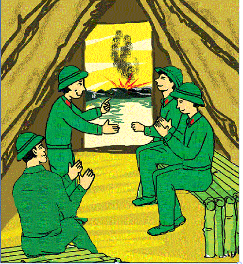 Loạt pháo vừa dứt, được sự cổ vũ của mấy đứa chúng tôi, Hưng lại diễn: “… Chúng tớ ở trọ trong một gia đình nghèo, nhà chỉ có hai mạ con. Cô con gái tuổi dậy thì, hai má lúc nào cũng ửng đỏ, mắt thì lúng la lúng liếng. Đêm nào mạ cũng nhường giường cho chúng tớ. Hai mạ con kéo chõng tre ra sân ngủ. Tớ quan sát thấy đêm nào mạ cũng nằm phía trong, còn cô con gái thì nằm phía ngoài. Đêm thứ ba, đại đội đột ngột nhận lệnh hành quân. Ba giờ sáng tớ dậy, mò ra sân sờ vào chỗ cô con gái nằm để chào tạm biệt! Bỗng một bàn tay gầy guộc như kìm quặp vào tay tớ và quát: “Ai?”. Biết nhầm mục tiêu, tớ quỳ xuống: “Mạ ơi, chúng con lại lên đường…”. Mạ bật dậy, giọng rưng rưng: “Ừ, các con đi chân cứng đá mềm. Mai mốt hết giặc về thăm mạ nhá!”. Nghe tiếng, cô con gái nằm phía trong bật dậy, không kịp nữa rồi, tớ chân nọ đá chân kia…”.