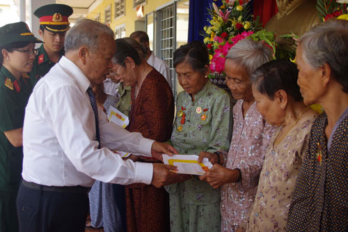 Đại tá Nguyễn Hồ trao giấy chứng nhận cho các thành viên nguyên là lực lượng tuyến đường CK.