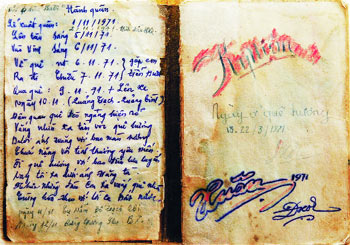 Phía sau cuốn sổ là phần ghi nhớ, ghi chép những điều quan trọng về anh. Đó là ngày sinh, ngày nhập ngũ, ngày vào Đoàn, vào Đảng, những điểm dừng chân trên đường hành quân khi anh cùng đồng đội vượt Trường Sơn qua đất Lào như: Khăm-muộn, Xa-van-na-khẹt, Thà-khẹt, A-tô-pư… đến Tây Nguyên. Ngày 13-5-1972 cũng là mốc cuối cùng của cuốn nhật ký. Trải qua 38 năm, cuốn nhật ký của anh để lại, màu giấy úa vàng theo năm tháng, nét mực phai màu nhưng đọc nhật ký của anh mới biết, cuộc đời anh, dù ngắn ngủi nhưng phản ánh suy nghĩ chung của tuổi trẻ Việt Nam thời chống Mỹ hào hùng.