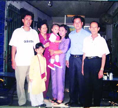 Ông Hồ Sỹ Cường (đầu tiên bên phải) và bà Nguyễn Hương Vy (thứ ba từ trái qua) cùng con cháu