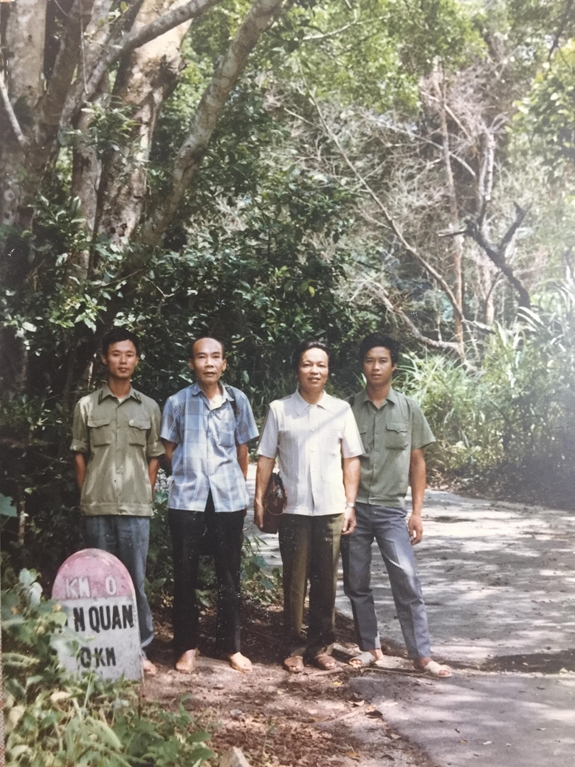 Nhà báo, nhà văn Đặng Văn Nhưng (thứ hai, từ phải sang) trên đường đi công tác. Ảnh: ĐẶNG THU. |