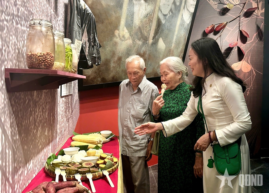 Trong khung cảnh đó, chúng tôi may mắn gặp bà Lê Tú Cẩm, cựu tù chính trị Côn Đảo, bà dừng lại rất lâu ở phòng trưng bày chuyên đề “Ẩm thực Nam Bộ thời kháng chiến”. Chúng tôi cùng du khách tham quan may mắn được nghe nhân chứng lịch sử “thuyết minh” về những món ăn trong tù như: “Trứng rồng rô ti”, “cốm mẹ quê hương”, “kim châm xào”, “rau muối chua”...