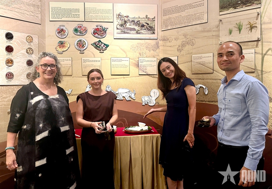 Du khách trải nghiệm ẩm thực Việt Nam tại trưng bày chuyên đề “Ẩm thực Nam Bộ thời kháng chiến”. |