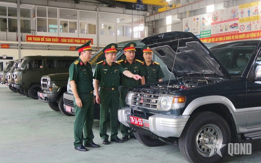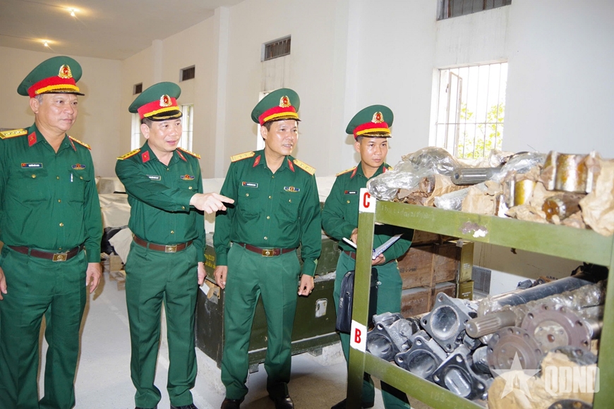 Đoàn công tác Cục Hậu cần-Kỹ thuật Quân khu 3 kiểm tra công tác bảo dưỡng, sửa chữa của Xưởng X81. Ảnh: HẢI HÀ