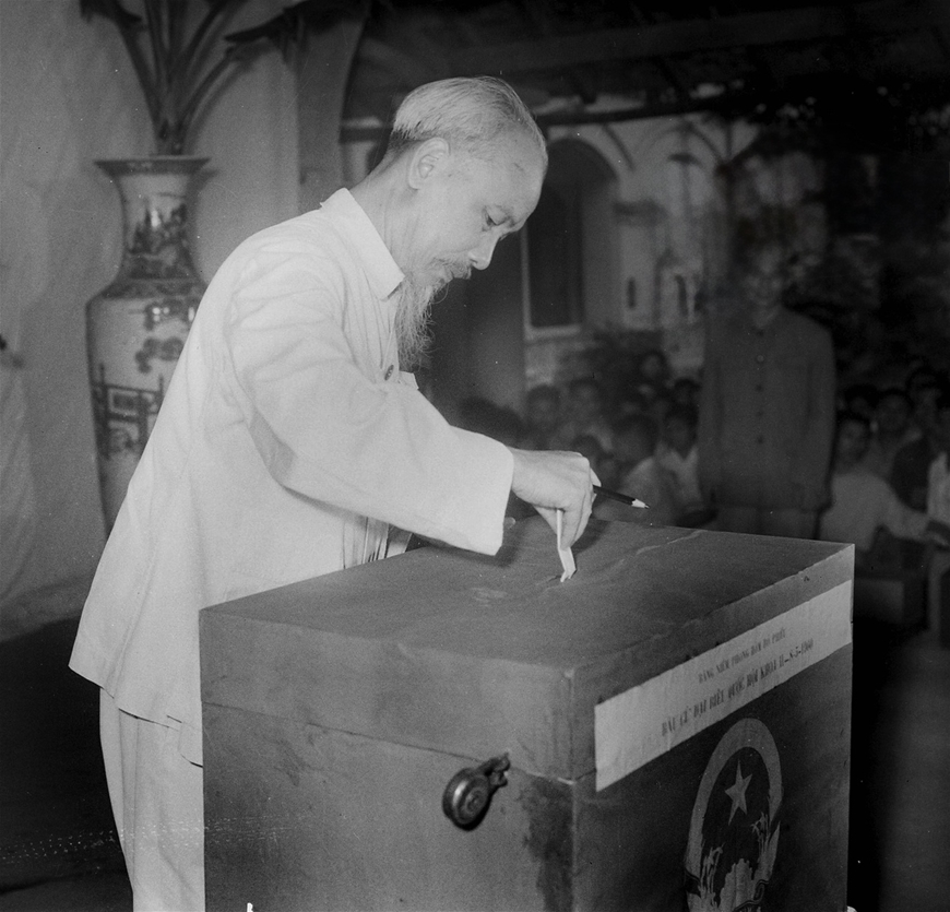 | Chủ tịch Hồ Chí Minh bỏ phiếu bầu cử đại biểu Quốc hội khóa II, tháng 5-1960. Ảnh tư liệu |
