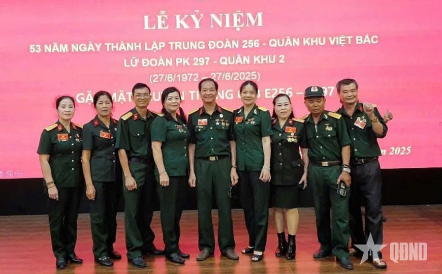 | Cựu chiến binh Nguyễn Hương Lý (thứ ba, từ phải sang) cùng đồng đội trong ngày gặp mặt truyền thống đơn vị. Ảnh: LÝ NGUYỄN |