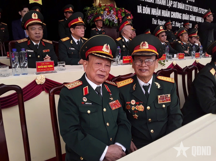 Thượng tướng Nguyễn Văn Được, nguyên Thứ trưởng Bộ Quốc phòng và Đại tá Bùi Văn Dục (bên phải) tại Lễ kỷ niệm 70 năm Ngày thành lập Sư đoàn 312 (tháng 12-2020). Ảnh do nhân vật cung cấp