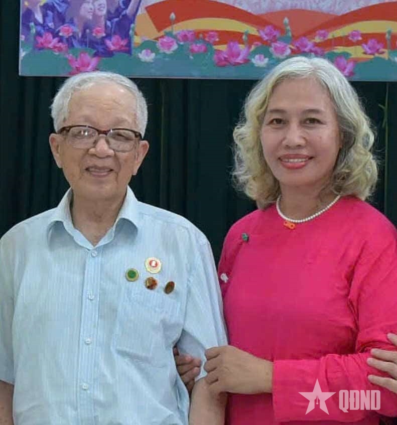 Chị Bùi Phương Thảo và cựu chiến binh của Trung đoàn Tây Tiến. Ảnh do nhân vật cung cấp