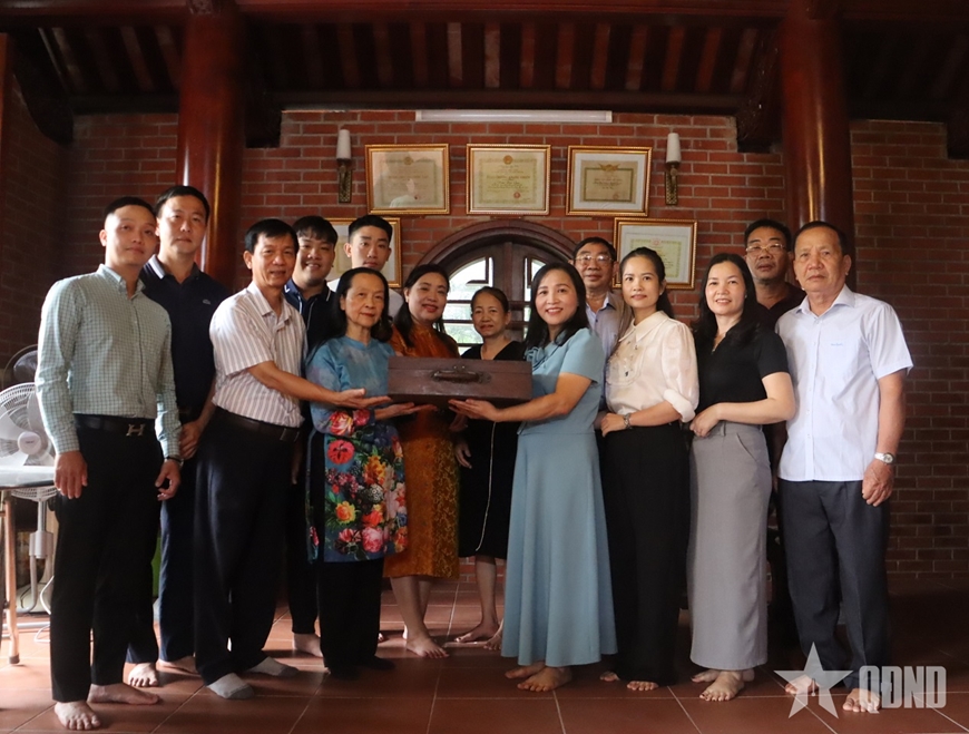 Gia đình đồng chí Trần Hữu Quán trao chiếc tráp gỗ tặng Bảo tàng Nghệ An - Xô viết Nghệ Tĩnh, năm 2024.