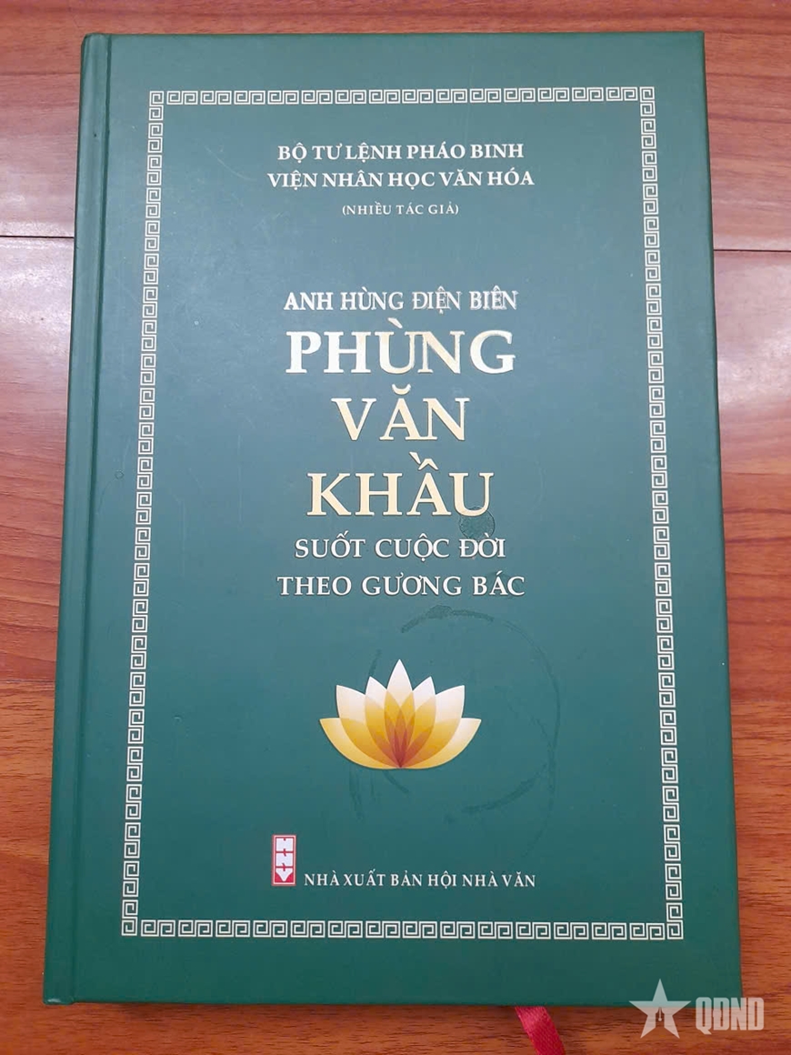 | Bìa cuốn sách “Anh hùng Điện Biên Phùng Văn Khầu suốt cuộc đời theo gương Bác”. |