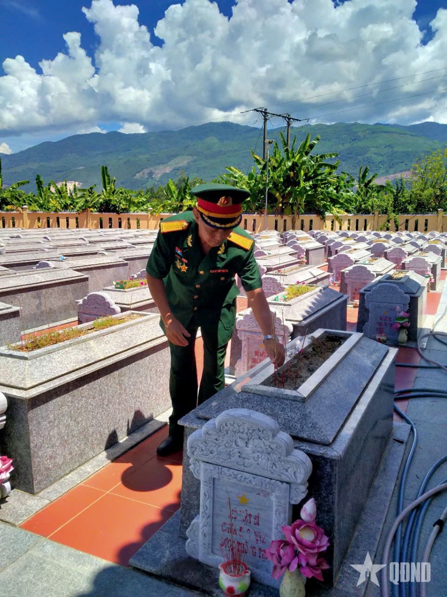 Cựu chiến binh Nguyễn Mạnh Từ thắp hương tưởng nhớ đồng đội dịp kỷ niệm 50 năm Chiến thắng Thượng Đức, năm 2024. Ảnh do nhân vật cung cấp. |