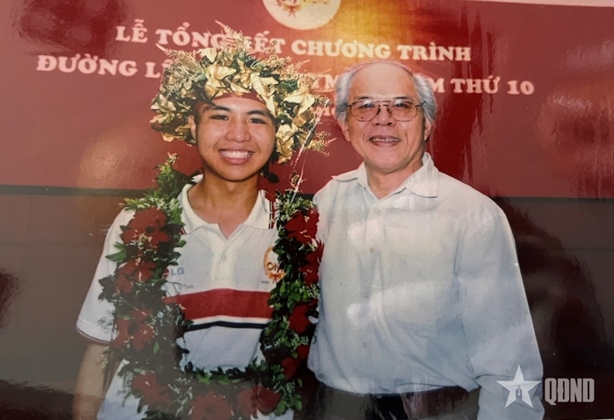 | PGS, TS Nguyễn Quang Vinh cùng thí sinh giành được vòng nguyệt quế trong Chương trình “Đường lên đỉnh Olympia”. Ảnh do nhân vật cung cấp |