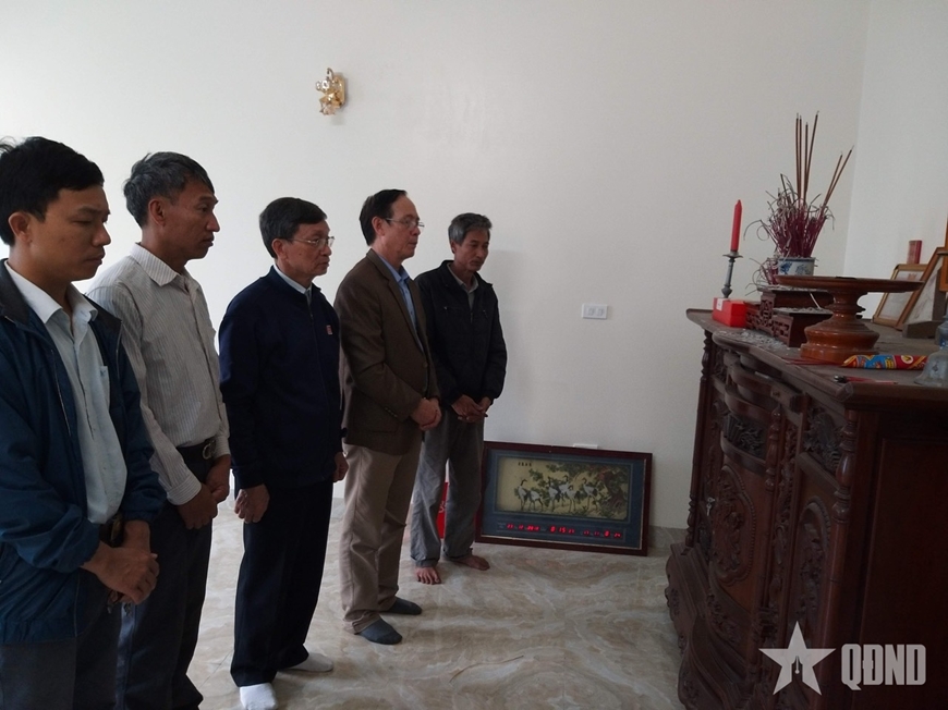 Ban liên lạc bạn chiến đấu Sư đoàn 320 đến thăm nhà, thắp hương liệt sĩ Đỗ Đình Pháp. Ảnh: THÁI BÌNH