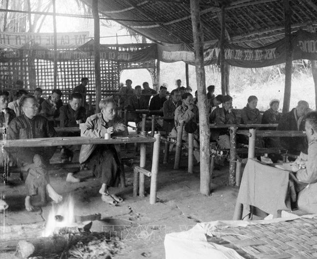 | Chủ tịch Hồ Chí Minh dự Hội nghị Ủy ban Liên Việt toàn quốc tại Việt Bắc, tháng 2-1948. Ảnh tư liệu |