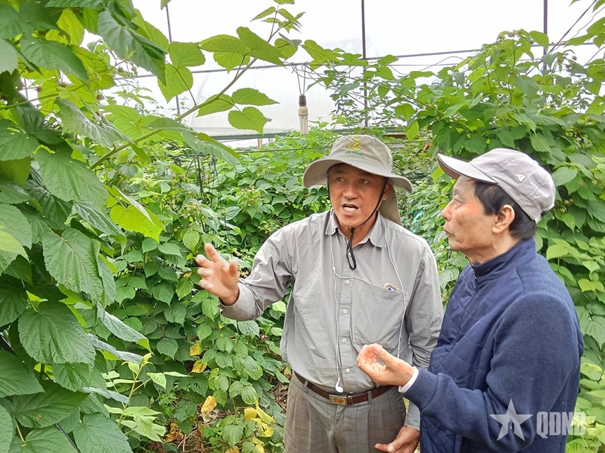 | Ông Vũ Nhuần (bên trái) trò chuyện với du khách. Ảnh: ĐOÀN THIỆN VY |
