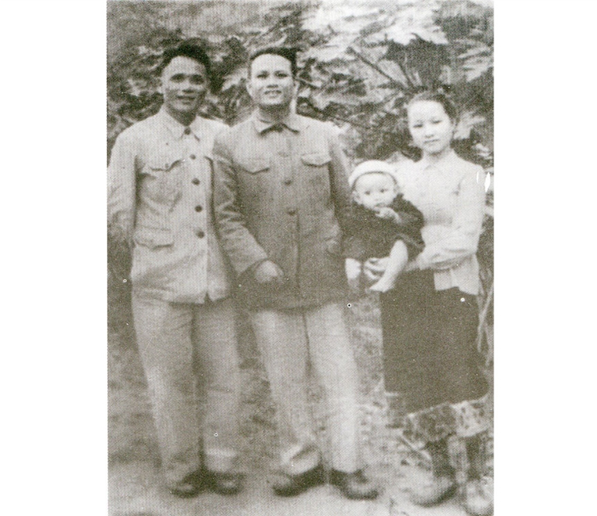 | Tổng Bí thư Đảng Nhân dân Cách mạng Lào Kaysone Phomvihane và vợ, con đến thăm Trưởng đoàn cố vấn Việt Nam Chu Huy Mân (bên trái), năm 1956. Ảnh tư liệu |