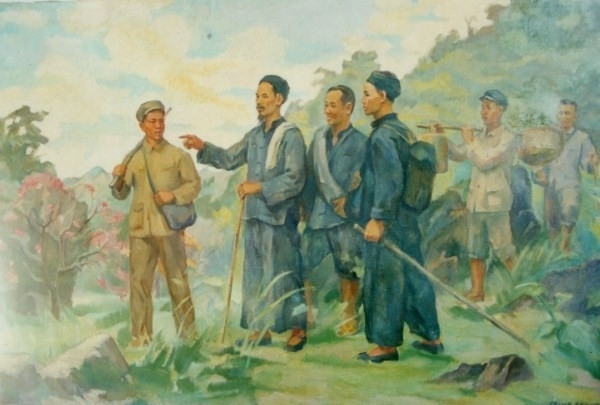 | Bác Hồ về Pác Bó, Cao Bằng. Tranh sơn dầu của TRỊNH PHÒNG |