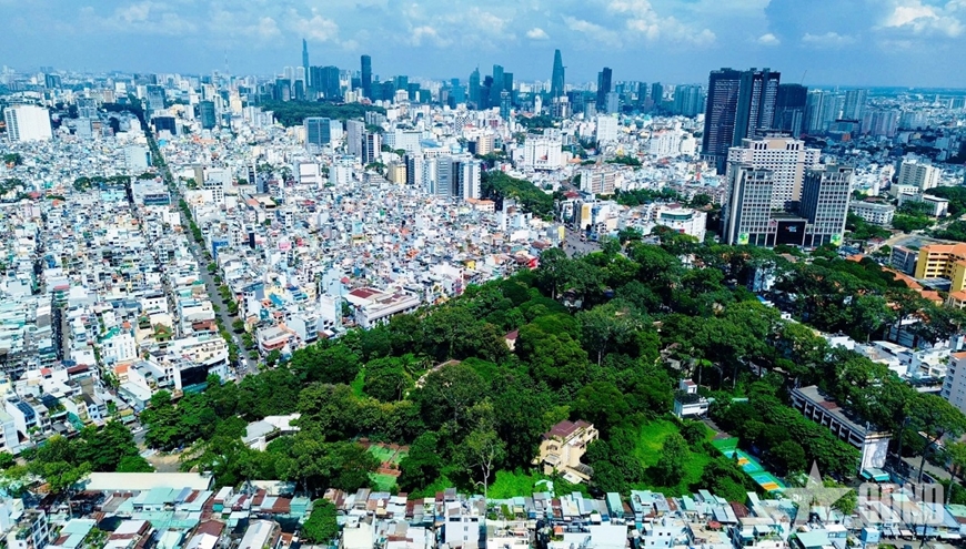 | Khu đất có mảng xanh được quy hoạch xây dựng công viên, đài tưởng niệm nạn nhân Covid-19. Ảnh: KIM SÁNG |