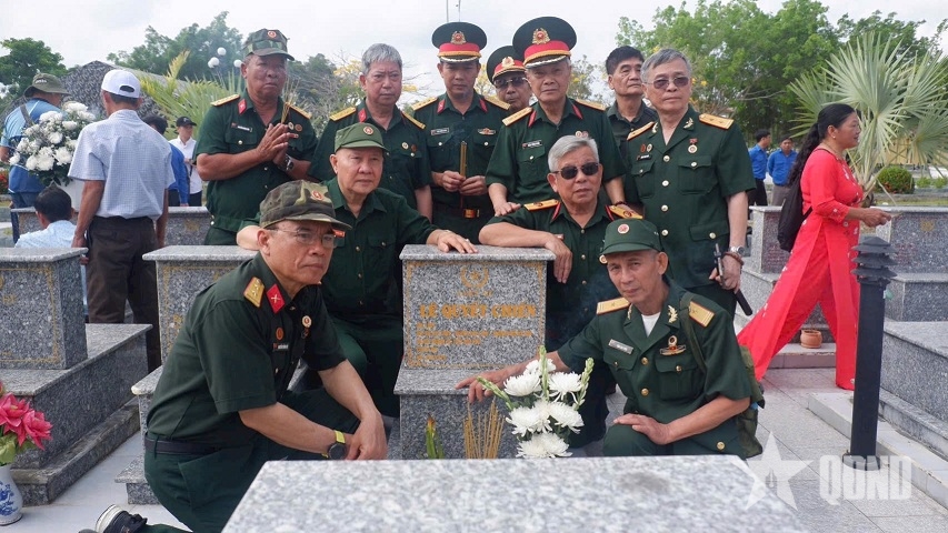 Các cựu chiến binh Trung đoàn 1 - U Minh viếng mộ đồng đội. Ảnh: VŨ TÙNG