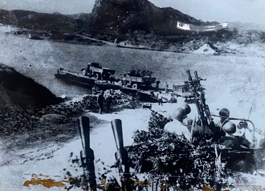 | Trận địa pháo của Trung đoàn Pháo cao xạ 214 bảo vệ phà Quán Hàu, năm 1968. Ảnh tư liệu |
