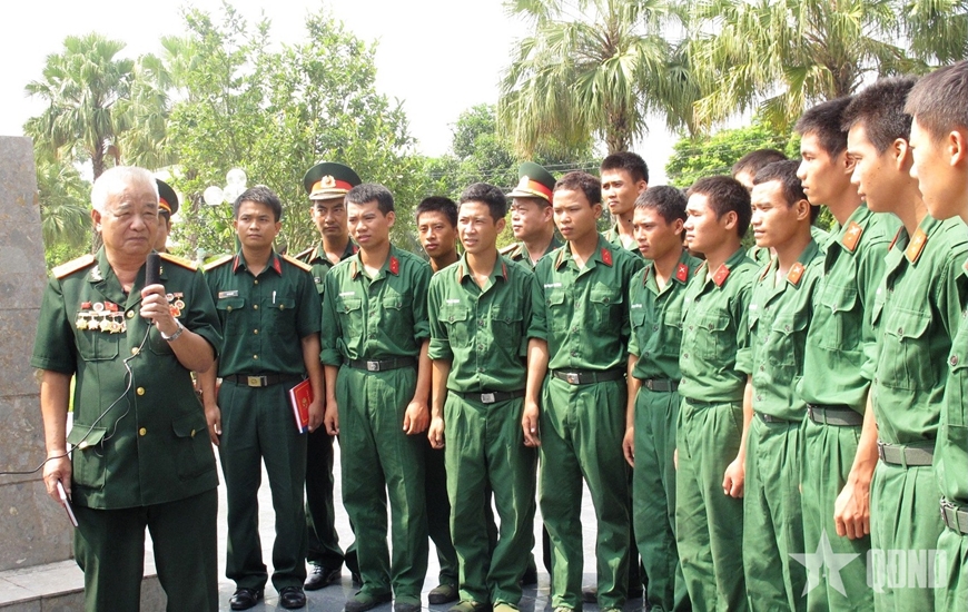 | Đại tá, Anh hùng LLVT nhân dân Hoàng Đăng Vinh nói chuyện truyền thống với cán bộ, chiến sĩ Trung đoàn 209, Sư đoàn Bộ binh 312, tháng 10-2014. Ảnh: ĐỨC GIANG |