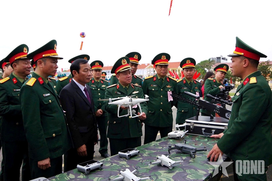 | Các đại biểu tham quan sáng kiến, mô hình, học cụ huấn luyện trong Lễ ra quân huấn luyện tại Trung đoàn 50, Bộ CHQS TP Hải Phòng (tháng 3-2026). Ảnh: NGỌC KHOA |