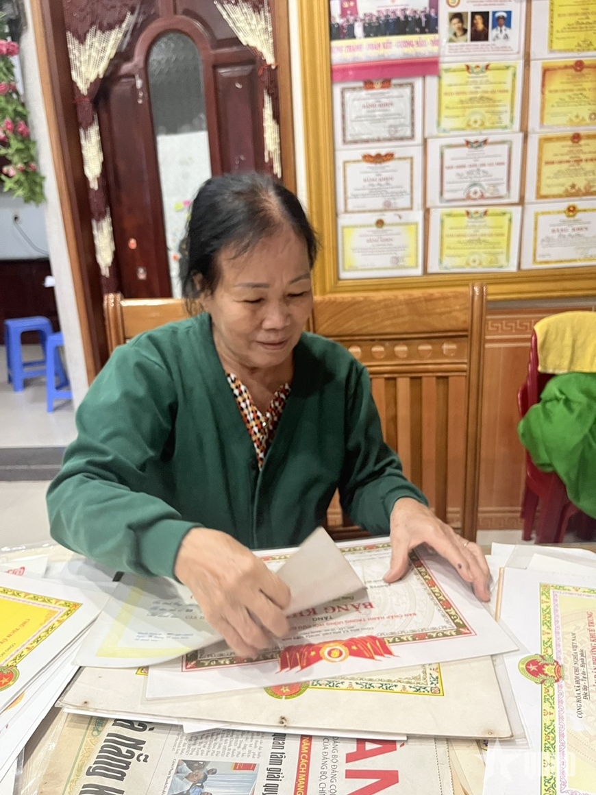 Bà Đoàn Thị Thanh Thùy giới thiệu về những thành tích trong quá trình công tác và hoạt động cách mạng. Ảnh: THỦY TIÊN